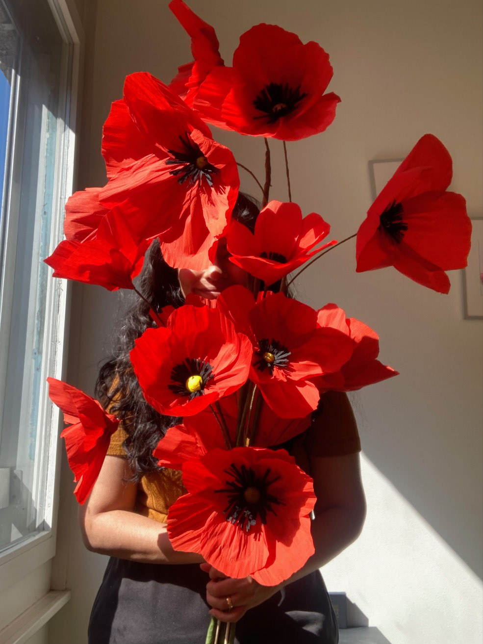 Taking inspiration from the brand's new 'Poppy Collection,' we crafted these oversized paper poppies—perfectly timed for spring.